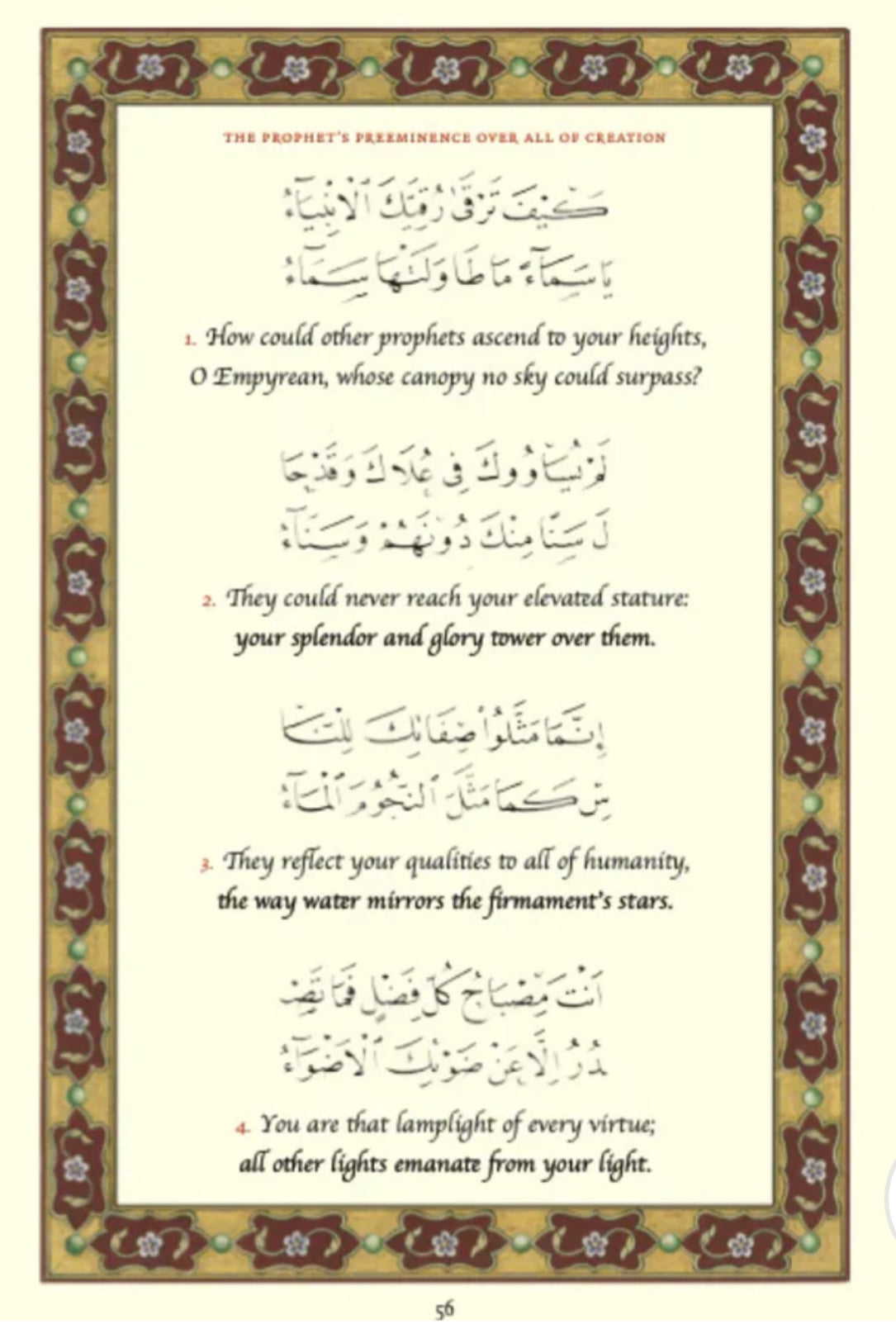 Great poetry has moved hearts and souls across civilizations from premodern times until today. Imam al-Buṣīrī excelled at praise poetry, and his verses attained global a reach because he praised the best of creation. His two most sublime poems, the Burdah and the Hamziyyah have over the centuries occasioned countless commentaries explicating their eloquence and linguistic subtleties.